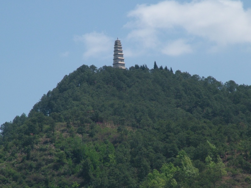 会理古白塔,因塔身为白色而得名,当地又称文塔。白塔座落在会理县城关镇东南部的南阁乡文峰山巅,为会理县8景之一。距县城5千米。会理古白塔始建年限无考,有关史料只记载于清道光21年(公元1841年)重修。该塔建筑面积68.89平方米,共9级4面,高31.8米。空腔。底层北面有拱门,经此可进入塔内。拱门右侧石棂上刻有1副对联的上联,书有文峰峭凌云一径登峰造极,下联无存。第3、4级内有大理石浮雕如来佛和4大天王像。第5、6级有小圆窗。会理古白塔座落处白塔山,形如一艘木船,山上树木葱郁,林中还有民间自筹资金建造的庙宇群,是会理人休闲游乐的好去处。